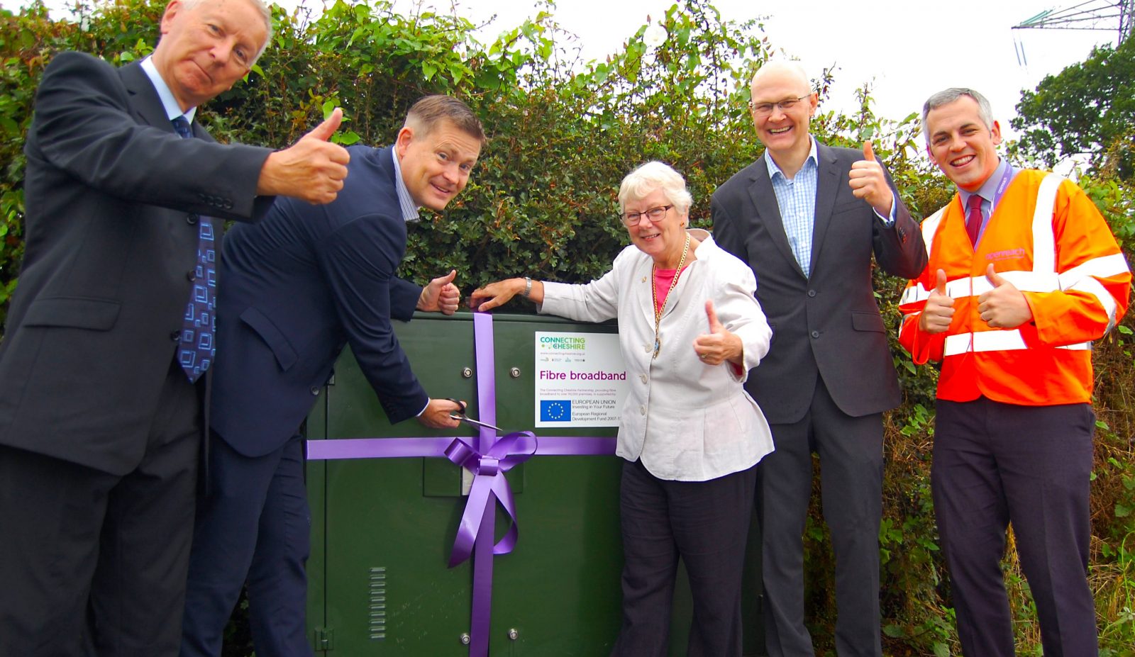 Connecting Cheshire ribbon cutting ceremony for Neston cabinet 26, left to right:
